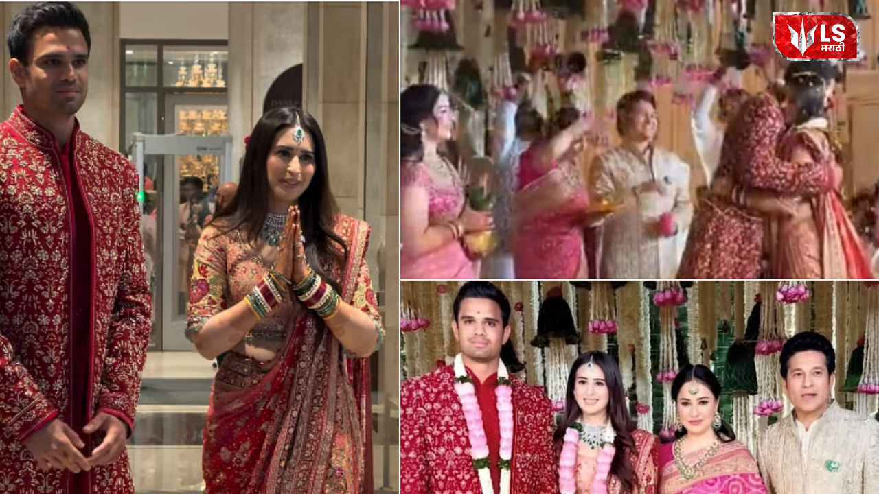 मुंबईतील वरळी येथील पंचतारांकित हॉटेमध्ये अर्जुन-सानियाचा विवाहसोहळा पार पडला. आज सकाळी पावणे बाराच्या सुमारास अर्जुन-सानिया यांनी लग्नगाठ बांधली. विशेष म्हणजे लग्नात अर्जुनने पारंपारिक पोशाख परिधान केला होता, ज्यात तो खूपच हँडसम दिसत होता. त्याने लाल रंगाची शेरवानी परिधान केली होती. तर सानियाने लाल रंगाची साडी नेसली होती. या साडीमध्ये सानिया एकदम सुंदर दिसत होती. तर विवाहप्रसंगी सचिन तेंडुलकर आणि अंजली तेंडुलकर अर्जुन आणि सानिया यांच्या बाजूला उभे होते. त्यावेळी सचिनच्या हातात फुलं होती तर अंजली यांच्या हातात दिवा असलेलं ताट होतं. अर्जुन-सानियाने एकमेकांना वरमाला घालताच त्यांच्यावर फुलांचा वर्षाव करण्यात आला. एकमेकांना हार घातल्यानंतर अर्जुन-सानियाने आनंदाने एकमेकांना मिठी मारली. सध्या त्यांच्या या लग्नसोहळ्याचे खास फोटो आणि व्हिडीओ सोशल मीडियावर मोठ्या प्रमाणात व्हायरल होत आहेत.