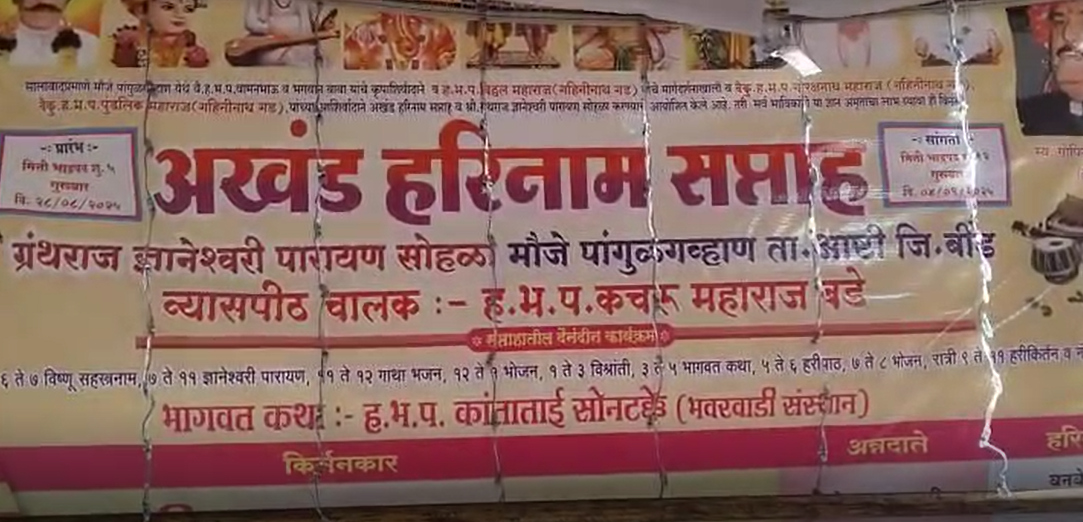 आष्टी तालुक्यातील पांगुळगव्हाण येथे गेली सत्तर वर्षांपासून एक गाव एक गणपती उत्सव मोठ्या उत्साहात साजरा होत आहे. लोकनेते गोपीनाथ मुंडे गणेश मंडळ यांच्या वतीने दहा दिवस मोठ्या उत्साहात भक्तीमय वातावरणात गणेश उत्सव साजरा होत आहे. या गणेश उत्सव निमित्त टाळ मृदंग गजरात महाआरती गणेशाची संपन्न होत असून दहा दिवस घरोघरी चूल बंद आहे. गणेश उत्सवा निमित्त एकत्रीत सर्व ग्रामस्थ सकाळ संध्याकाळी महाप्रसाद घेत आहेत.