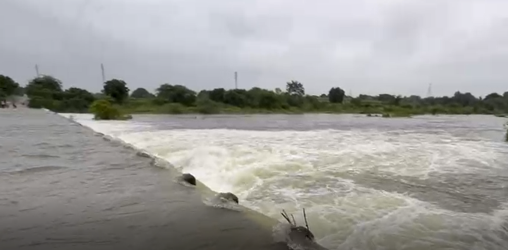 बीड जिल्ह्याच्या आष्टी तालुक्यात गेल्या दोन दिवसांपासून सुरू असलेल्या जोरदार पावसामुळे चोभानिमगाव येथील कडी नदीने धोक्याची पातळी ओलांडली आहे. नदीवरील पूल पाण्याखाली गेला असून काढणीला आलेल्या पिकांचे मोठे नुकसान झाले आहे. कडी नदीने रौद्र रूप धारण केलेले दृश्य पाहायला मिळत आहे.