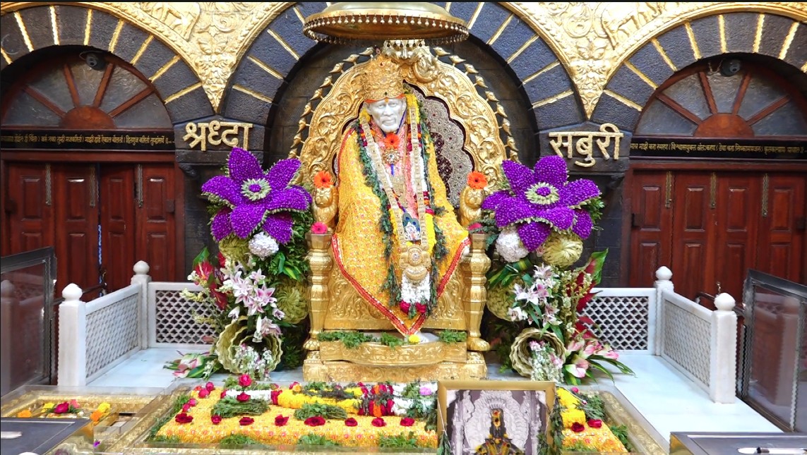 साईबाबांच्या दरबारात यंदा खास फुलांची भव्य सजावट करण्यात आली आहे. गुलाब, झेंडू, ऑर्किड, लिली, आणि असंख्य रंगीबेरंगी फुलांनी सजलेलं मुख्य मंडप क्षेत्र हे एका भक्तिरसात रंगलेल्या बगिच्यासारखं दिसत आहे. फुलांचे झुंबर, कमानी, आणि रांगोळ्या यामुळे संपूर्ण मंदिर उजळून निघालं आहे.