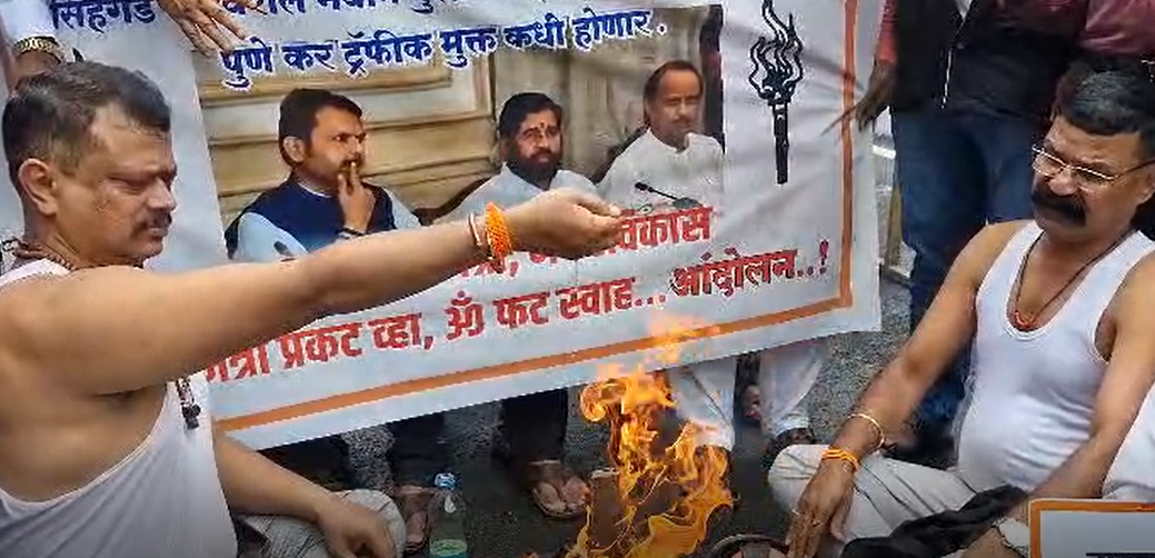 सिंहगड रोड येथील उड्डाणपूल सुरु करण्यासाठी ठाकरे गटाने एक आगळंवेगळं आंदोलन केलं आहे. त्यांनी मुख्यमंत्री प्रकट व्हा …ॐ फट स्वाहा. म्हणत हे आंदोलन केले. आम्हाला सिंहगड रोड येथील उड्डाणपूल सुरु करून द्या नाही तर आम्ही नागरिकांसोबत मिळून उद्घाटन करू असा इशारा त्यांनी मुख्यमंत्री, नगरविकास मंत्री आणि पालकमंत्र्यांना दिला आहे.