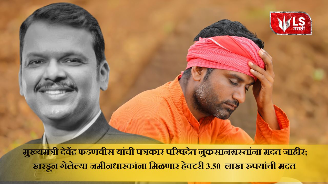 • मुख्यमंत्री देवेंद्र फडणवीस यांची पत्रकार परिषदेत नुकसानग्रस्तांना मदत जाहीर, खरडून गेलेल्या जमीनधारकांना मिळणार हेक्टरी 3.50 लाख रुपयांची मदत