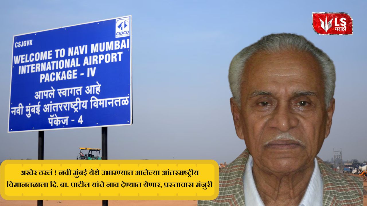नुकत्याच झालेल्या बैठकीत या प्रस्तावाला मान्यता देण्यात आली. नवी मुंबई येथे उभारण्यात येणाऱ्या आंतरराष्ट्रीय विमानतळाला लोकनेते दिनकर बाळू पाटील म्हणजेच दि. बा. पाटील असे नाव देण्यात आले आहे. याबाबतची अधिकृत घोषणा लवकरच मुख्यमंत्री देवेंद्र फडणवीस करणार आहे. मिळालेल्या माहितीनुसार दि बा पाटील यांचे नाव आंतरराष्ट्रीय विमानतळाला देण्यासाठी पंतप्रधान नरेंद्र मोदी यांच्याकडून देखील सहमती मिळाली होती.