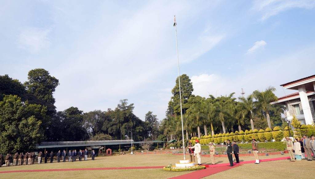 जळगाव शहरातील पोलीस मुख्यालयातील पोलीस कवायत मैदानात पालकमंत्री गुलाबराव पाटील यांच्या हस्ते रविवारी 26 जानेवारी रोजी 9 वाजता गणतंत्र दिनानिमित्त शासकीय ध्वजारोहण करण्यात आले. याप्रसंगी जिल्हाधिकारी आयुष प्रसाद पोलीस अधीक्षक डॉक्टर महेश्वर रेड्डी, अपर पोलीस अधीक्षक अशोक नखाते, सहाय्यक पोलीस उपाधीक्षक संदीप गावित, जिल्हा परिषदेचे मुख्य कार्यकारी अधिकारी श्री अंकित, जळगाव महानगरपालिकेचे आयुक्त ज्ञानेश्वर ढेरे यांच्यासह विविध विभागातील पोलीस अधिकारी व कर्मचारी मोठ्या संख्येने उपस्थित होते. यावेळी पालकमंत्री गुलाबराव पाटील यांनी उपस्थित त्यांना मार्गदर्शन करत जिल्ह्याच्या कामांचा आढावा सांगितला. त्यानंतर जिल्हा पोलीस दलाच्या विविध विभागातील पथकाने मानवंदना देऊन पतसंलन करण्यात आले त्यानंतर सांस्कृतिक कार्यक्रमांचे देखील आयोजन करण्यात आले होते यावेळी जिल्हाभरातील अनेक कलाकारांनी आपली कला सादर केली.