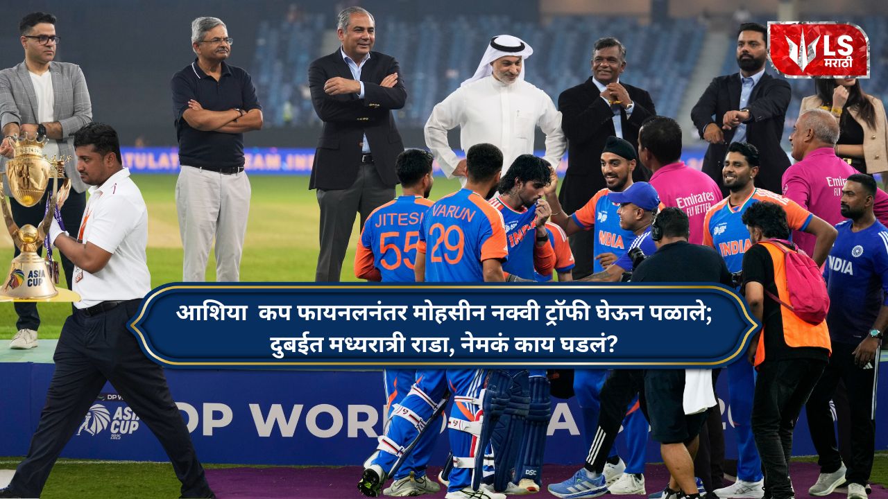 दुबई : आशिया कपच्या अंतिम सामन्यात भारतीय क्रिकेट इतिहास रचला. पाकिस्तानला 5 विकेट्सनं हरवून भारतानं नवव्यांदा आशिया कपचे विजेतेपद पटकावलं. तिलक वर्मानं अंतिम सामन्यात शानदार कामगिरी करत नाबाद 69 धावा करुन भारताला विजय मिळवून दिला. तिलक वर्मानं 53 चेंडूत 3 चौकार आणि 4 षटकारांसह मॅच विनिंग खेळी केली. त्याच्या खेळीनं चाहत्यांची मनं जिंकली, पण विजयानंतर क्रिकेट इतिहासात खरोखरच कधीही न घडलेली गोष्ट घडली. कारण सामन्यानंतरचा एका तासाचा नाट्यमय खेळ क्रिकेट इतिहासात अमर झाला आहे आणि येणाऱ्या पिढ्यांना तो नक्कीच लक्षात राहील. खरं तर, सामना जिंकल्यानंतर भारताचा कर्णधार सूर्यकुमार यादवनं पाकिस्तान क्रिकेट बोर्डाचे अध्यक्ष मोहसिन नक्वी यांच्याकडून ट्रॉफी स्वीकारण्यास नकार दिला.