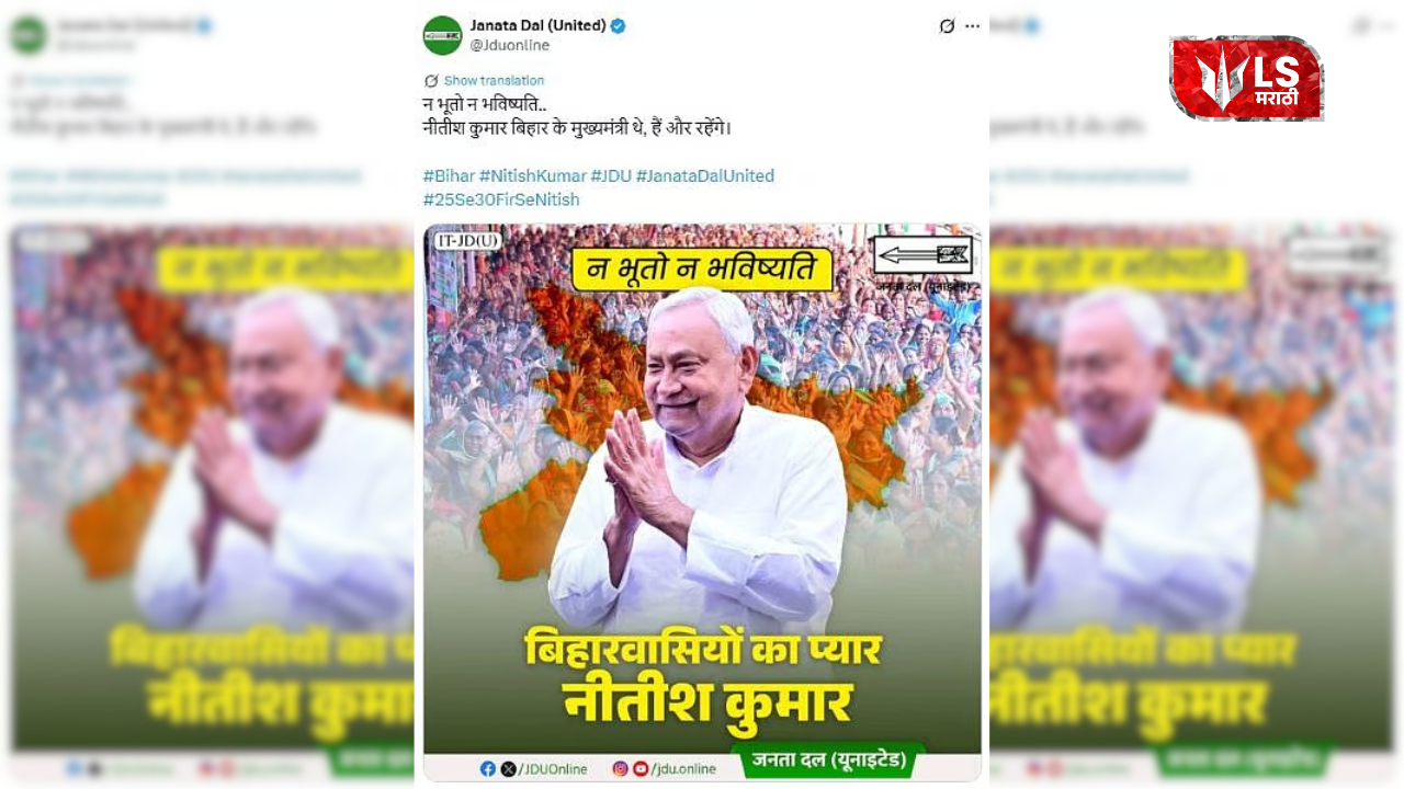 बिहार विधानसभा निवडणुकीच्या निकालानंतर मुख्यमंत्रीपदावरुन ‘जेडीयू’ने केलेली पोस्ट डिलीट केल्यानं चर्चेला उधाण आलं आहे. जेडीयूने त्यांच्या अधिकृत एक्स हँडलवरील एका पोस्टमध्ये, “न भूतो न भविष्यति… नितीश कुमार हे बिहारचे मुख्यमंत्री होते, आहेत आणि यापुढेही राहतील .” असं म्हणलं होत पण, त्यानंतर लगेचच ही पोस्ट हटवण्यात आली. त्यामुळे अनेक तर्क-वितर्क लावले जात आहेत.