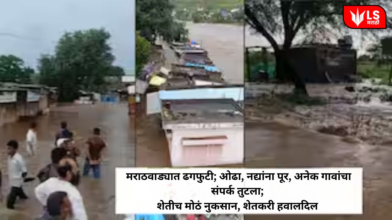 राज्यात सध्या पावसाचा जोरदार हल्ला सुरु असून मराठवाडा, मध्य महाराष्ट्रात ढगफुटीसदृश्य पावसाने थैमान घातले आहे. लातूर, बीड, धाराशिव ,छत्रपती संभाजीनगर, जालना, परभणी ,हिंगोली अशा सर्वच जिल्ह्यात तुफान पाऊसाने धुमाकूळ घातला आहे. यामुळे पिकांचे अतोनात नुकसान झाले असून शेतकऱ्यांच्या जमिनी अक्षरशः खरडून गेल्या आहेत. मराठवाड्यातील बहुतांश जिल्ह्यांमध्ये रात्री झालेल्या पावसामुळे मोठ्या प्रमाणात ओढ्यांना पूर आला असून अनेक गावांमधील घरांमध्ये पाणी शिरले आहे. तर अनेक ठिकाणी रस्त्यांना नदीचे स्वरूप आले असून जोरदार पावसामुळे आणि पुरामुळे अनेक गावांचा संपर्क तुटलाय.