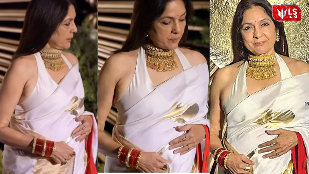 नीना गुप्ता यांनी हैदराबादमध्ये असलेल्या अभिनेत्री रश्मिका मंदाना आणि अभिनेता विजय देवरकोंडा यांच्या लग्नाच्या रिसेप्शनला हजेरी लावली होती. यावेळी त्यांनी Ivory साडी आणि त्यावर हॉल्टर नेक ब्लाउज परिधान केला होता. त्यांच्या या लूकचे फोटो आणि व्हिडीओ सोशल मीडियावर जोरदार व्हायरल झाले होते. तर त्यांच्या या लूकनंतर त्यांच्या प्रेग्नंसीच्या अफवांना सुरूवात झाली होती. ज्यामुळे नीना गुप्ता सोशल मीडियावर चांगल्याच चर्चेत आल्या आहेत.