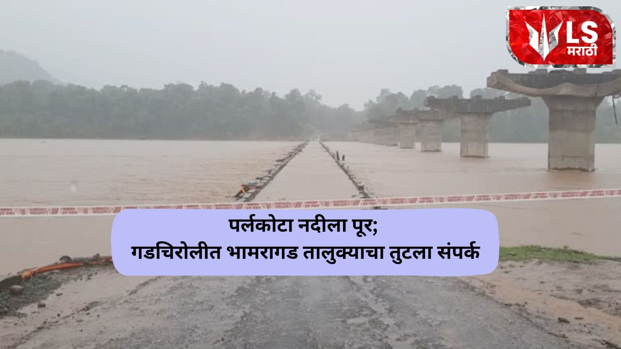 गडचिरोली: भामरागड तालुका मुख्यालयात असलेल्या पर्लकोटा नदीवरील पुल पाण्याखाली गेल्याने पुन्हा एकदा भामरागड तालुक्याचा जिल्हा मुख्यालयाशी संपर्क तुटला आहे. सध्या राज्यभर परतीच्या पावसाने कहर केला असून गडचिरोली जिल्ह्यात देखील मागील तीन दिवसापासून दमदार पावसाने हजेरी लावल्याने नदी, नाले तुडुंब भरून वाहत आहेत. विशेष म्हणजे दक्षिण भागात या पावसाने चांगलाच कहर केल्याचे दिसून येत आहे. शिवाय छत्तीसगड राज्यात झालेल्या पावसामुळे इंद्रावती नदीला पूर आला. त्यामुळे भामरागड तालुका मुख्यालयातील पर्लकोटा आणि पामुलगौतम नदी देखील दुथडी भरून वाहत आहे. आज सकाळी ६ वाजता हेमलकसा आणि भामरागड मधोमध असलेल्या पर्लकोटा नदीला पूर आला आणि पूल पाण्याखाली गेला.
