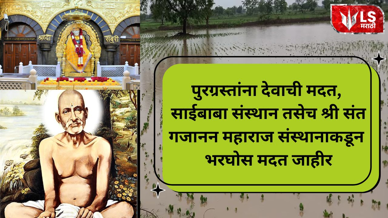 राज्यात यावर्षी झालेल्या सततच्या पावसामुळे अनेक जिल्ह्यांमध्ये पूरस्थिती उद्भवली आहे. शेतकऱ्यांच्या पिकांचं अतोनात नुकसान होऊन हजारो गावकऱ्यांचं जनजीवन विस्कळीत झालं आहे. या आपत्तीच्या पार्श्वभूमीवर शासनाने मदतीचे आवाहन केल्यानंतर श्री गजानन महाराज संस्थान, शेगाव या सार्वजनिक न्यासाने पुन्हा एकदा आपल्या सामाजिक बांधिलकीचं दर्शन घडवलं आहे. तसेच साईबाबा संस्थानाकडून पूरग्रस्तांसाठी एक कोटी रुपयांची मदत देखील करण्यात आली आहे.